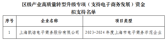 根据《金山区关于加快培育发展新质生产力进一步推动产业高质量转型升级的若干政策》(金发改规〔2025〕1号)文件精神,级产业高质量转型升级专项(支持电子商务发展)资金拟支持名单予以公示。